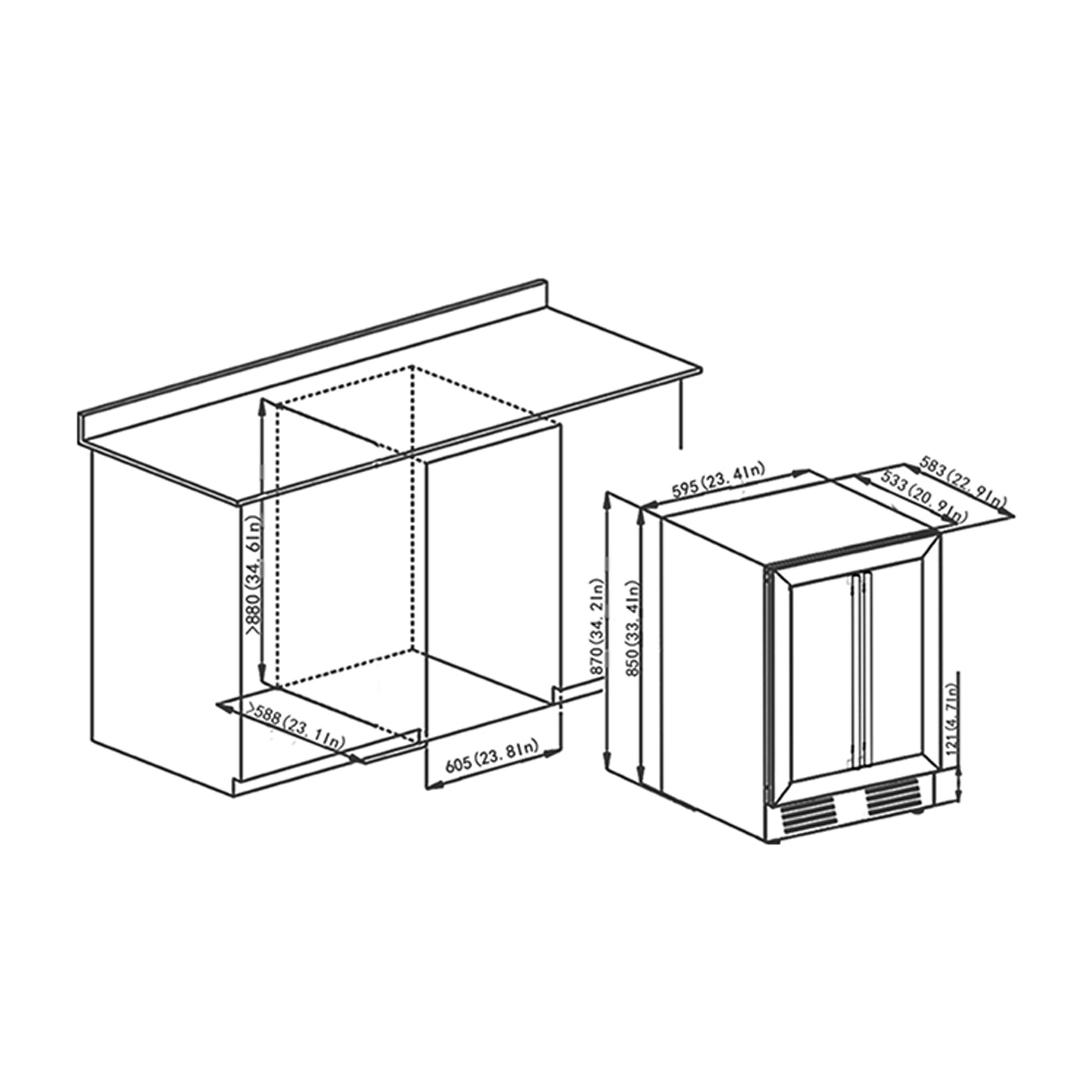 3.Upgrade Your Room Decor: Our 22.9"(L) x 23.4"(W) x 33.9" (D).Stainless wine cooler with the clear glass french-style door promote the class to your home or bar decor. Its front-vending design makes it ideal for under-counter or freestanding installation.